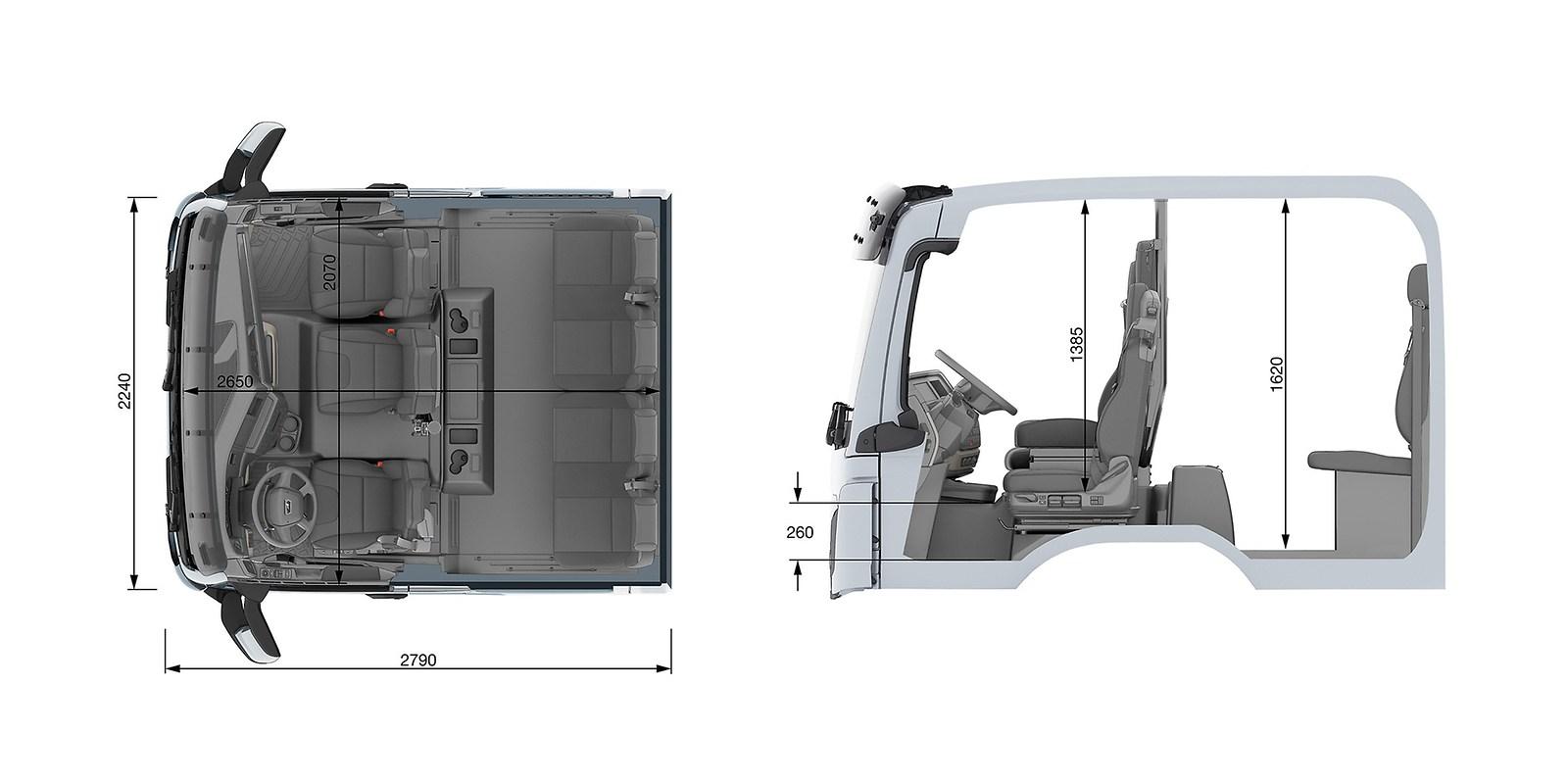 | المقاعد وأماكن النوم | المقاعد : 6 (7, ، في حالة تزويدها بمقعد مزدوج لمساعد السائق) : |